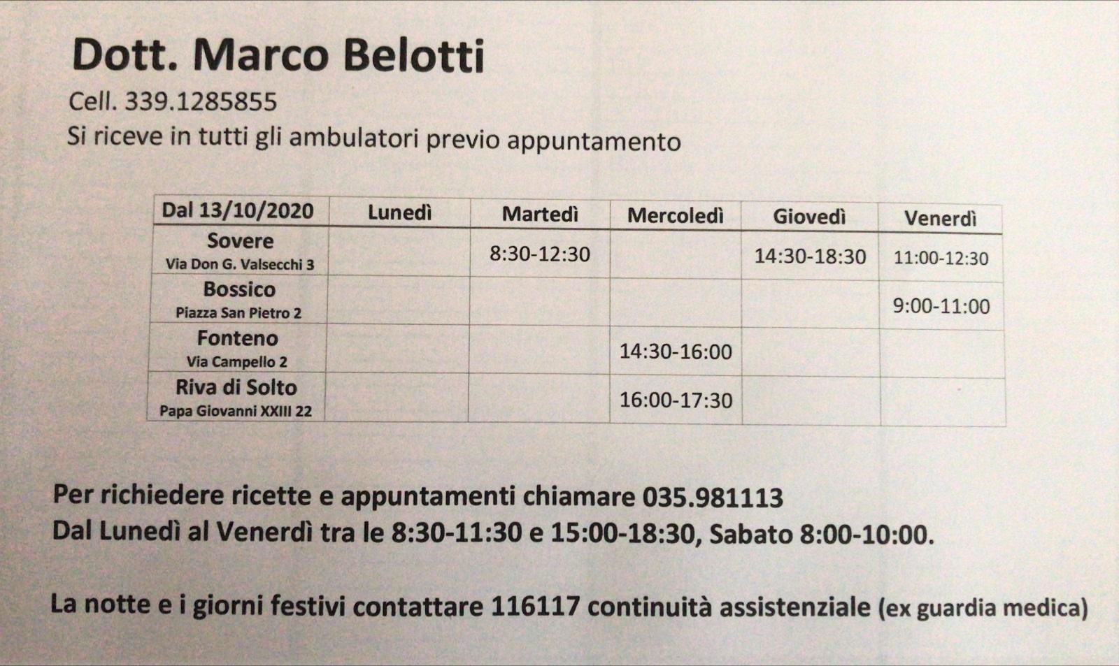 Orario di ricevimento del dott. Belotti