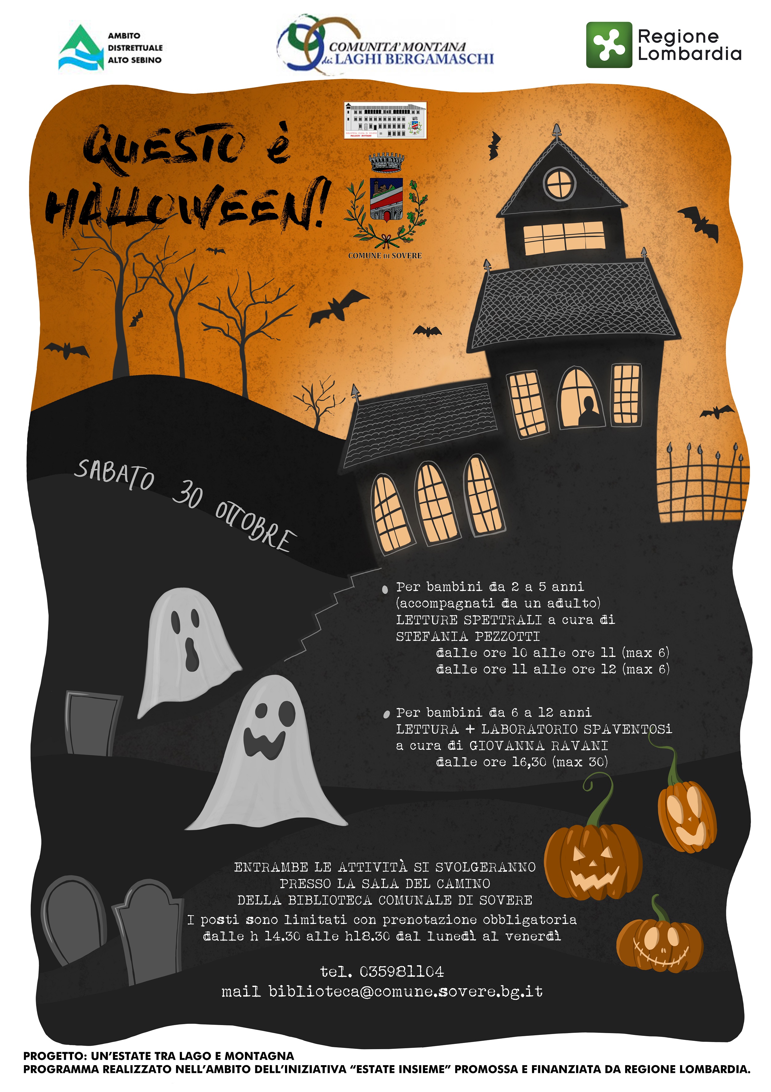 Il Comune di Sovere e la Comunità Montana dei Laghi Bergamaschi - Ambito distrettuale Alto Sebino, in collaborazione con la Biblioteca Civica “P. Guizzetti” di Sovere, organizzano un pomeriggio di letture per bambini e ragazzi dal titolo "Questo è Halloween!”