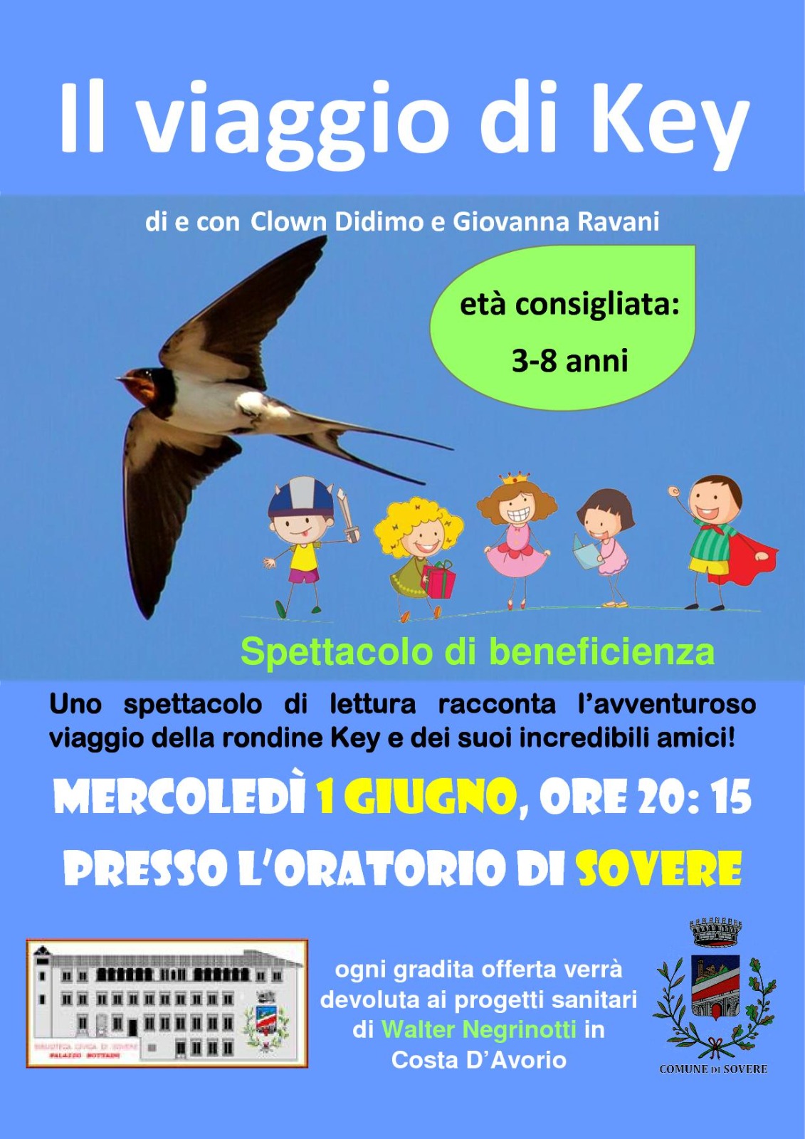 Il Comune, la Biblioteca civica e l'oratorio di Sovere presentano: Uno spettacolo di lettura in programma Mercoledì 1 giugno alle ore 20:15, presso l'oratorio.