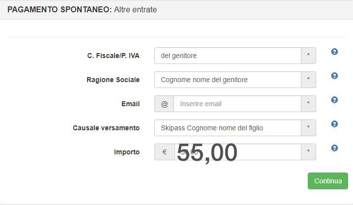 Rilascio skipass: alla domanda si dovranno allegare fotocopia documento d’identità del minore interessato, fotografia del minore, 5 Euro (in contanti) di cauzione per la Key Card, copia versamento pagoPA € 55,00.